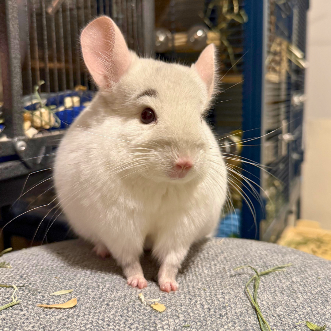 A calm, cuddly chinchilla who loves dust baths & snoozing under a gentle hand. With his favorite Oat and 2nd cut hay, he’s living the good life.