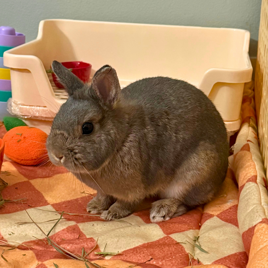 Marble loves Orchard Hay, fresh greens, & carrot treats. She spends her time zooming through tunnels & munching hay by her favorite window with a view.